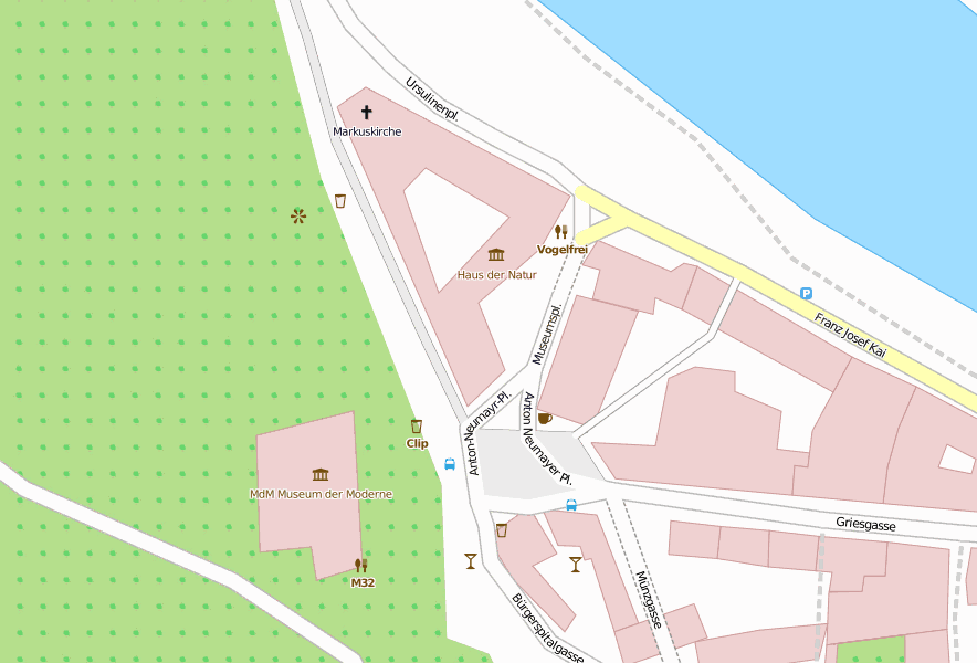 In der näheren Umgebung sind bekannte Attraktionen wie beispielsweise Haus der Natur, Rebublic und Carolino Augusteum. Interessant sind darüber hinaus diese Karten: Salzburger Dom, Stift Sankt Peter, Schloss Hellbrunn und Tiergarten Hellbrunn